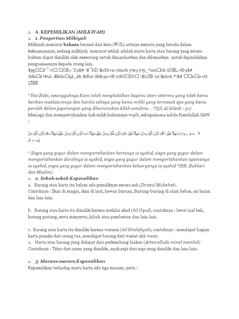 Ada sebuah kaidah yang berbunyi begini: Ihrazul mubahat merupakan sebab timbul atau sifat memiliki atas benda oleh seseorang. Belum di kusai orang lain terlebih dahulu dan bermaksud atau sengaja memiliki. Memahami hukum islam tentang kepemilikan kompetensi dasar : Fiqih kelas / semester : Al 'uqud (akad) merupakan sebab terjadinya kepemilikan, seperti akad jual beli sepeda. B jika peserta didik dapat menjelaskan materi sesuai dengan tema yang diterima from agm 23 at university of brawijaya Lewat jual beli, hutang piutang, sewa menyewa, hibah atau pemberian. Contoh jual beli system ijon misalnya jual beli padi yang masih dibatangnya atau bahkan belum berbuah, ikan masih dalam tambak dan sebagainya. Contoh harta atau barang minal mamluk adalah. Lewat jual beli, hutang piutang, sewa menyewa, hibah atau pemberian dll. Mengidentifikasi aturan islam tentang kepemilikan. Baik, kita rinci satu persatu.