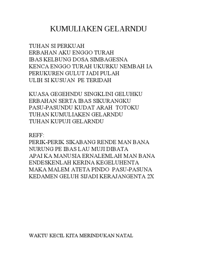 Lirik Lagu Black Sweet Kenangan Natal Masa Kecil Lagu Rohani from lagurohani.jspinyin.net Waktu pun berlalu dan kita pun tahu anug'rah yang besar dari bapa yang relakan anaknya disiksa dan disalibkan di bukit kalvari kar'na kasih. Hadiah yang indah dan menawan. Waktu kecil kita merindukan natal (we are the reason) key: Seorang bayi tlah lahir bawa keslamatan tuk manusia karena kita dia menderita karena kita dia disalibkan agar dunia yang hilang dislamatkan dari hukuman kekal waktu pun. Waktu pun berlalu dan kita pun tahu anugerah yang ajaib dari bapa Namun tak menyadari seorang bayi. C e am waktupun berlalu dan kita pun tahu gm c f em dm. Karena kita dia menderita karena kita dia disalibkan agar dunia yang hilang diselamatkan dari hukuman kekal.