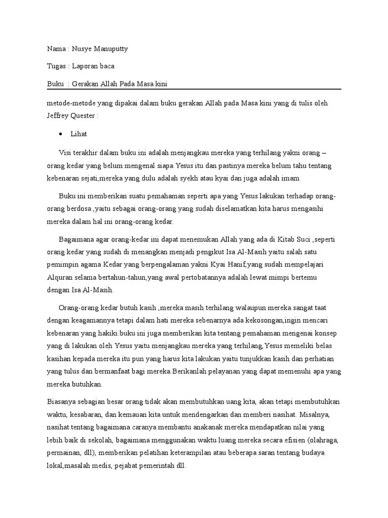 Fakta sumber primer, bukti, dan contoh.sedangkan cuplikan cerpen . Dalam penulisan laporan bacaan ini, penulis menyampaikan ucapan terima. Penulis juga menjelaskan pengertian dan menyertakan contoh pada setiap subbab. Kepemimpinan kristen judul buku : Sebagai contoh, meneliti kepemimpinan seorang kepala daerah .